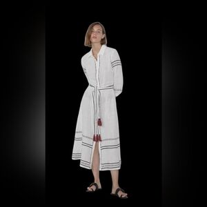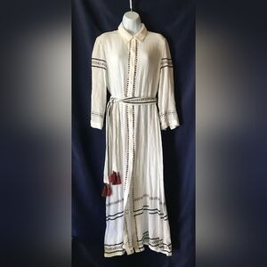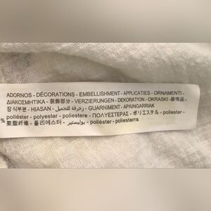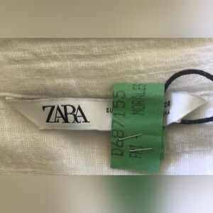 White textured fabric with Zara label. Ideal for crafting or design projects. The only small detail missing is a piece of the decoration at the tip of the ribbon that holds the waistband, as shown in the image.11