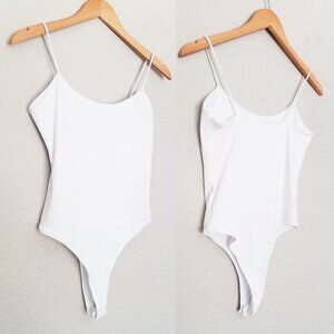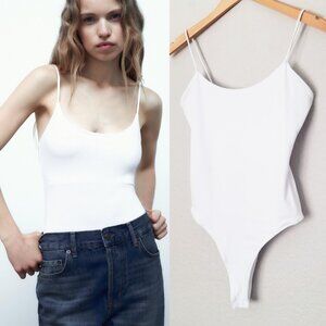 Zara White Thin Shoulder Strap Layered Bodysuit Tank Top Thong Stretch Size M