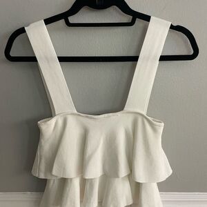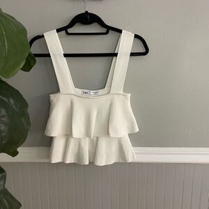 Zara White Tiered Square Neck Cropped Shirt Size Medium
