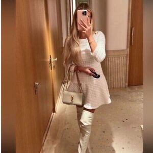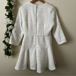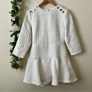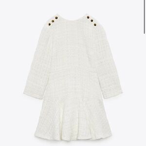 Zara White Tweed Peplum Side Gold Buttons Structured Mini Dress Sz S fit & flare