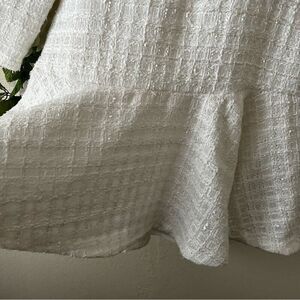 Zara White Tweed Peplum Side Gold Buttons Structured