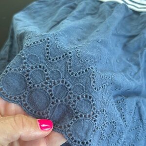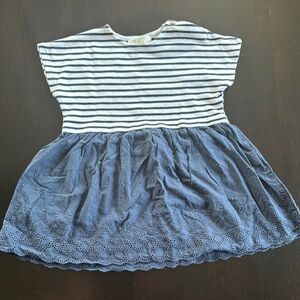 Embrace effortless style with this Zara sundress, featuring a crisp white and blue color palette. The dress boasts a casual crew neck and short dolman sleeves, perfect for laid-back occasions. Its soft, gathered skirt adds a touch of elegance to the overall design, making it a versatile addition to your wardrobe.
