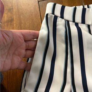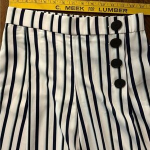 Zara White and Blue Striped Wide Leg Cropped Pants Flowy Elastic Waist M pockets, pleated front. polyester & Elastane. EUC