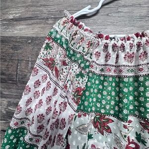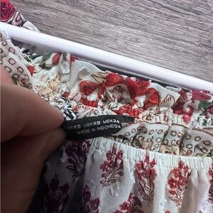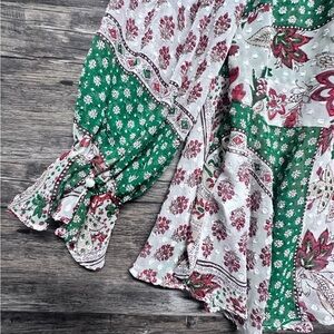 Zara White and Green Ruffled Bell Sleeve Top
