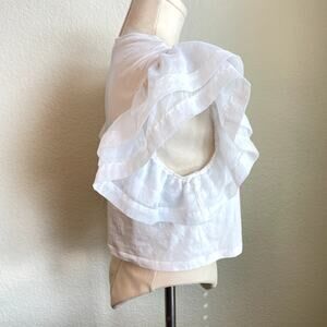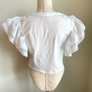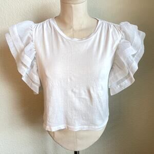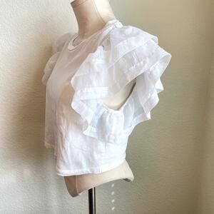 Zara White cotton chiffon ruffle sleeve top womens small blouse crop top tee