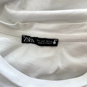ZARA White cotton chiffon ruffle sleeve top womens small blouse crop top tee, one spot on collar behind tag, not noticeable when wearing.