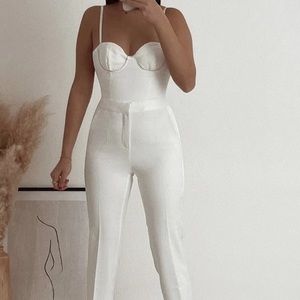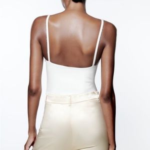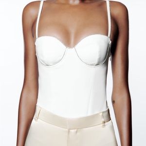 Zara White rhinestone corset embroidered bodysuit top blouse
