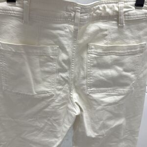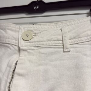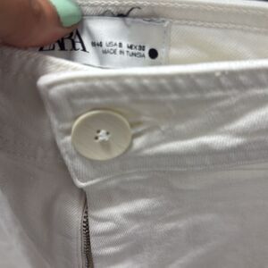 These Zara jeans feature a crisp white color and a stylish flare and wide-leg design. Crafted from structured denim, they offer a high-waisted fit that flows into a full-length cut, perfect for a minimalist aesthetic.