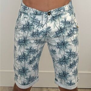 Zara White/Green Hybrid Shorts with Palm Tree Print