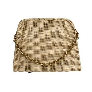 Zara Wicker Woven Basket Gold Chain Handbag Purse
