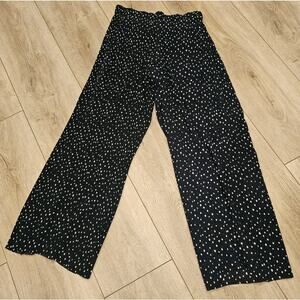 Zara Wide Leg Accordion/pleated Pants Navy Polka Dots Sz M