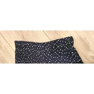 The Zara Wide Leg Accordion/Pleated Pants in Navy w/ White Polka Dots, size M, are versatile and stylish for various occasions such as travel, parties, or casual outings. Made from polyester, these pants feature a relaxed fit with an elastic waist for added comfort. The pleated front and wide-leg design add a trendy touch to the classic polka dot pattern, making them a fashionable and comfortable choice for the warmer seasons of summer, fall, and spring. Designed by Zara, these dress pants are perfect for women looking for a chic and trendy addition to their wardrobe.