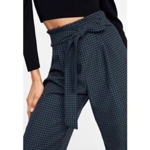 Zara Wide Leg Crop Front Tie Pleated Culotte Pants Plaid Size Large