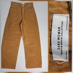 Zara Wide Leg Denim Pants Womens SZ 2 Ankle Crop High Rise Terracota