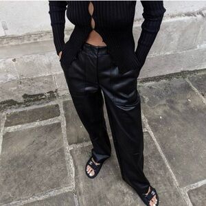 Zara leather cargo wide leg pants in black! Cargo carpenter style! New with tags! As seen on many bloggers and sold out!!