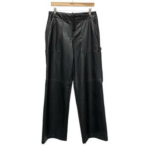 Zara Wide Leg Faux Leather Pants Size Medium Carpenter Utility Style Black NWT