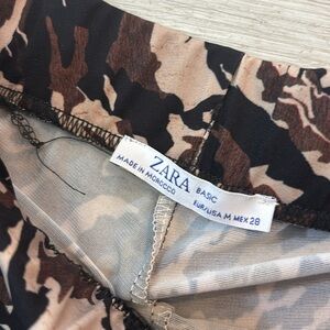 Zara Wide Leg Flowy Printed Palazzo Pant Brown Stretch Waist Size M