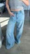 In very good condition. Light-blue denim that feels as soft and comfy as sweatpants. Gives a vintage ’70s vibe with its wide-leg silhouette and subtle scratches on the front pockets and hem. 100% cotton.
