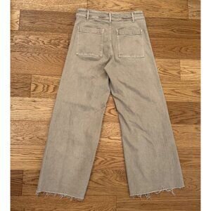 Zara Wide Leg Sailor Ecru Jeans Light Khaki Size 10 Stretchy Pants Raw Hem