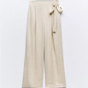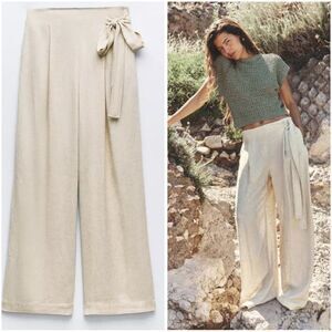 Zara Wide Leg Linen Blend Pants New