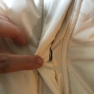 Pockets. Longer in the back to cover the bum in colder weather . Front zip closure with snap over. Poly Fill. Super warm and comfy!!