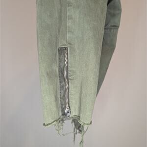 Zara Woman Army Green Skinny Cargo Pants Raw Hem Ankle Zip Size 4