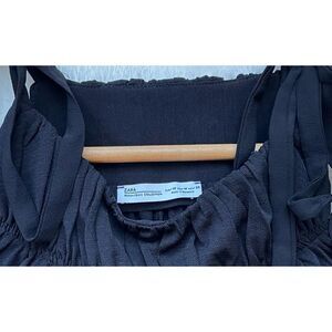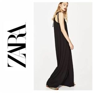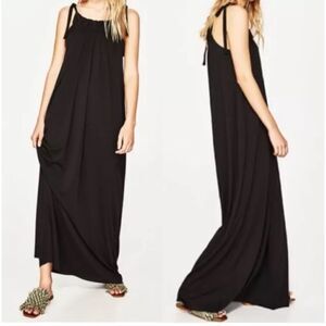 Zara Woman Basic Collection Black Shoulder Tie Flowy Maxi Dress, Size Medium