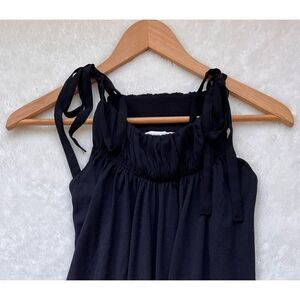 Zara Woman / Basic Collection black flowy maxi dress with adjustable tie shoulders. Gathered at the top of the front and back. Unlined. Unfinished hem.
