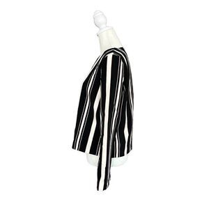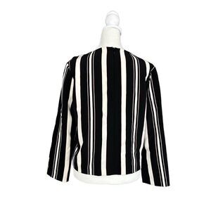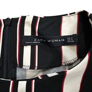 Zara Woman Black Red & White Stripe Collarless Cropped Blouse Size Medium