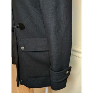 Zara Woman Black Toggle Zip Hooded Jacket. Full zip with gold colored zipper. Toggle closure. Snap flap pockets. Long sleeve. Lined. Hood. Buttons along the hood.