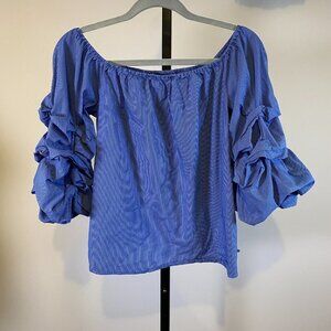 Zara Woman Blue Striped Puff Sleeves Off Shoulder Top