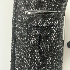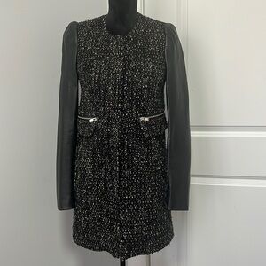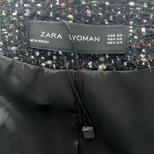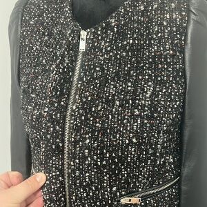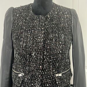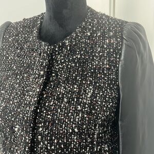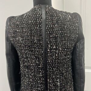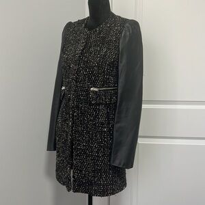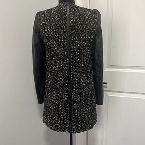 Zara Woman Bouclé Black Leather Sleeved Fully lined Coat Jacket - Size X-Small