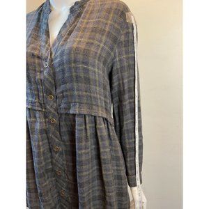 Zara Woman Checked Metallic Thread Dress Flowing Long Sleeve Green Size X Small