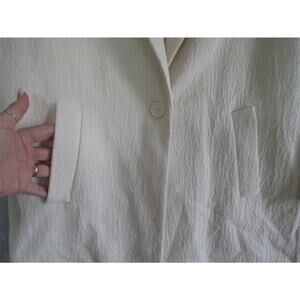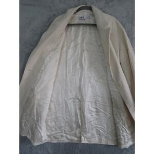 ZARA Woman long textured coat. Cream/off-white color. One-button front closure. Fully lined. Slit back hem. Vertical front pockets. Some faint marks/flaws shown in photos.