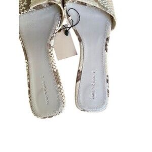 Zara Woman EU 41 US 10 leather snake print beige cream Tan nude slide sandals