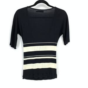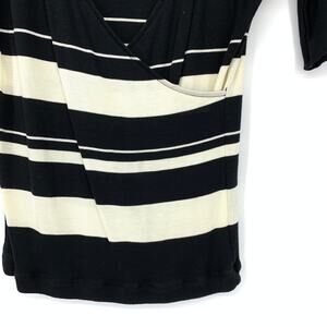 Zara Woman Faux Wrap Front Sweater Womens Sz M Short Sleeve Black White Stripe