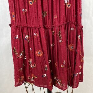 Zara Woman Floral Sequin Dress Embroidered Swiss Dot Burgandy Red Small