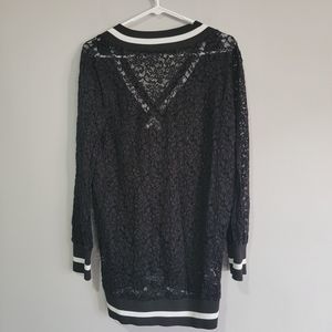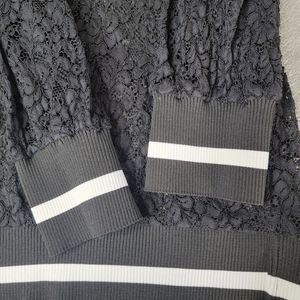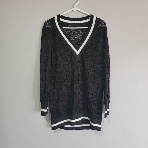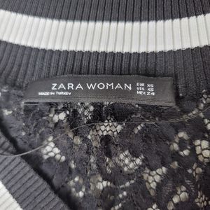 Zara Woman Long Lace Sweatshirt V Neck Black White Long Sleeve‎ Size XS