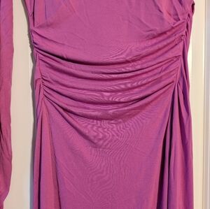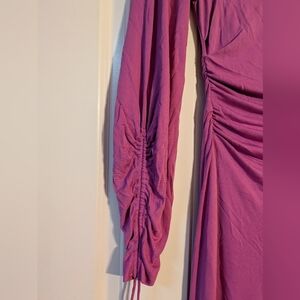 Chic asymmetrical dress with long sleeves. Rich purple color. Perfect for stylish occasions.