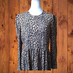 Zara Woman Medium long sleeve peplum leopard/cheetah print dress has zip closure in the back and the sleeves have 2 button closure. It has two side pockets.