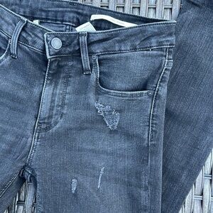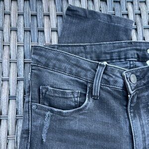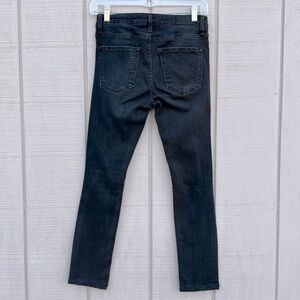 Black wash distressed and deconstructed medium rise slim fit jeans by Zara woman. Zip front with button closure. 5 pocket styling. Matte black hardware.