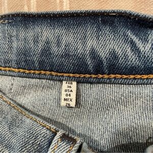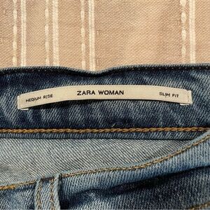 Zara Woman Medium Rise Slim Fit Straight Leg Stretch Distressed Denim Jeans 4