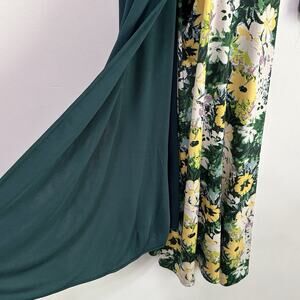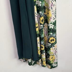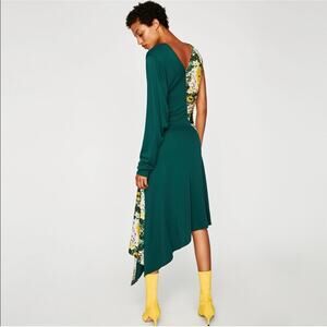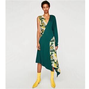 Zara Woman Midi Dress M/L One Sleeve Green & Floral Asymmetric Hem Party FLAW