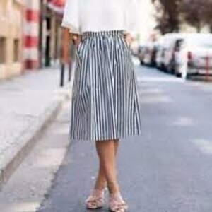 Zara Woman - Navy Blue and White Striped Midi Skirt