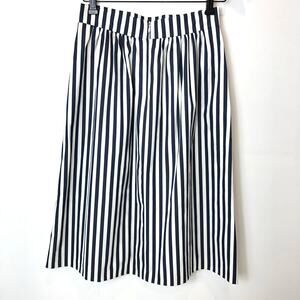 Zara Woman - Navy Blue and White Striped Midi Skirt - S