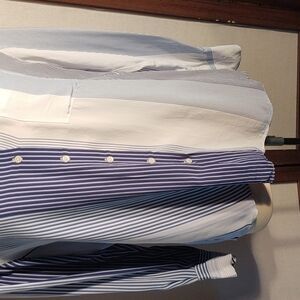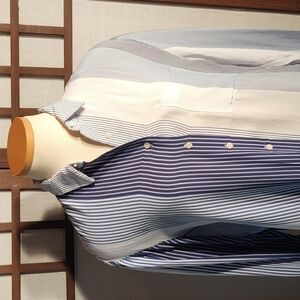 Zara Woman Navy and White Striped Button Down Shirt Sz S
