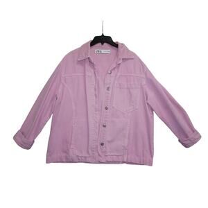Zara Woman Oversized Pink Denim Jacket Button Front Long Sleeve Women’s Size M
