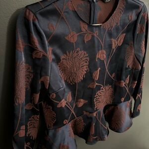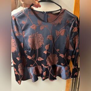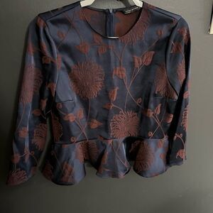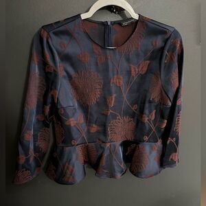 Zara Woman Pepplum Blue and Maroon Floral Trafaluc Top Size Small