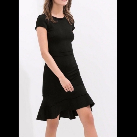 Zara Woman Ponte Knit Ruffle Hem Mini Dress Black Medium Little Black Dress LBD