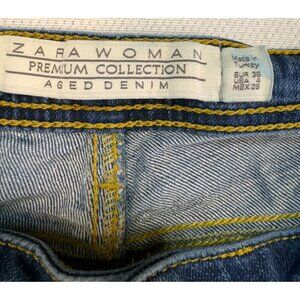 Zara Woman Premium Collection Aged Denim Jeans Size 4 Blue Distressed Look